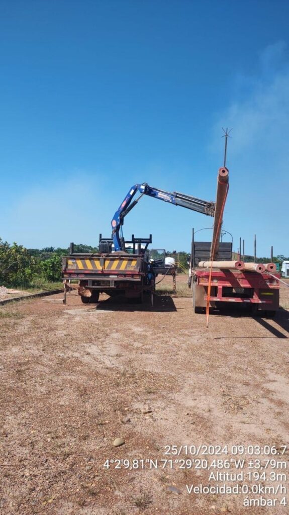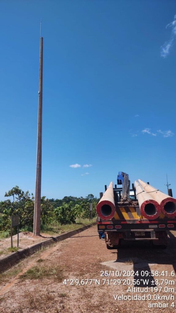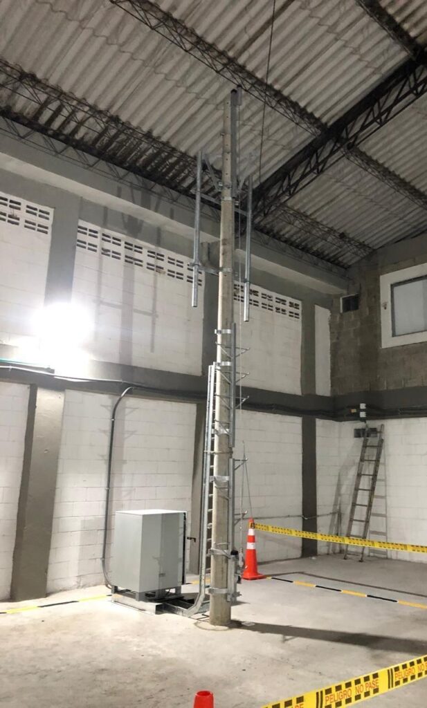 Suministro e instalación de postes de concreto, sistema de puesta a tierra y pararrayos, soportes.