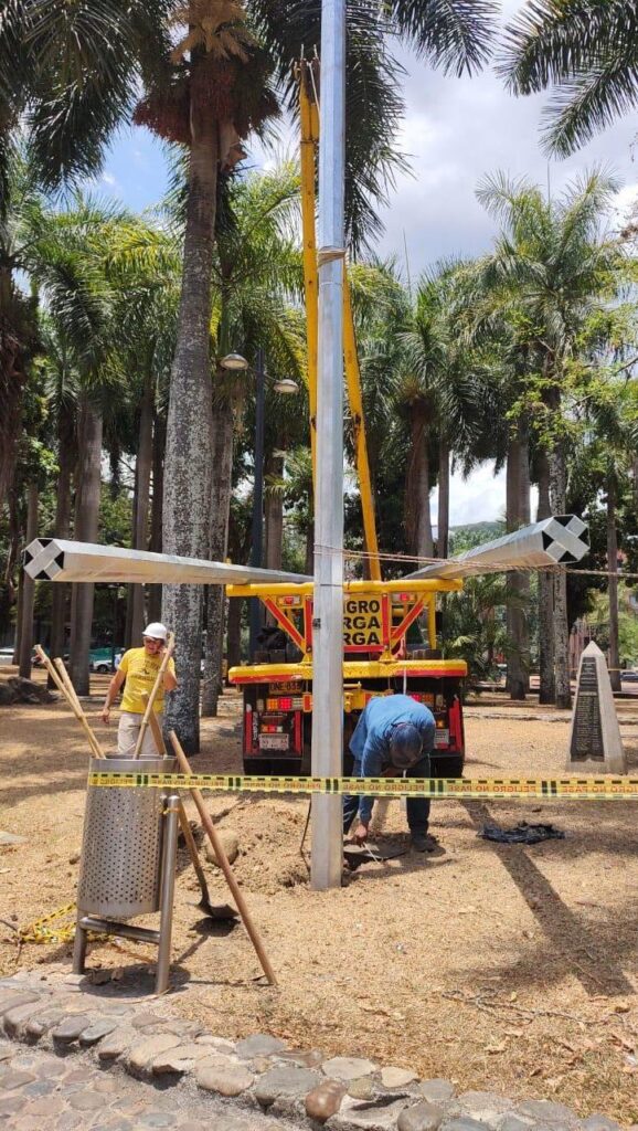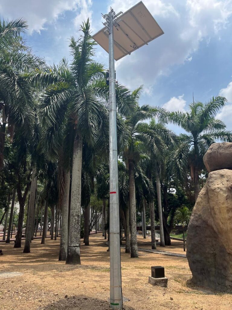 Suministro e instalación de postes metálico, sistema de puesta a tierra , pararrayos, soporte para panel solar.